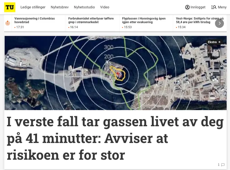 On March 6, 2024, three months after a public hearing process, our client Yara Clean Ammonia received approval from the Norwegian Directorate for Civil Protection (DSB) to start construction of an ammonia bunkering terminal from Azane Fuel Solutions at Fjord Base in Florø. A key element of the application was the risk contours from a QRA performed by HYEX Safety. Today these contours could be found as top news on the front page of Teknisk Ukeblad, the main technical daily newspaper in Norway. There was however no recognition to HYEX Safety.